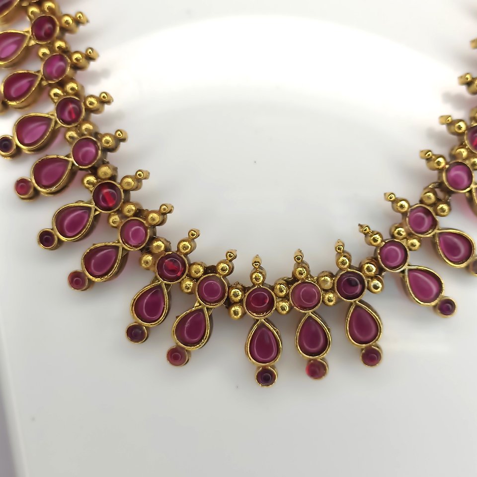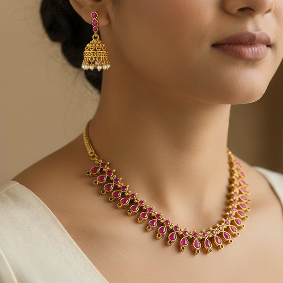 Lightweight yet luxurious, the Anarkali Ruby Necklace offers a blend of comfort, tradition, and beauty—ideal for anyone who loves classic South Indian jewellery styles.