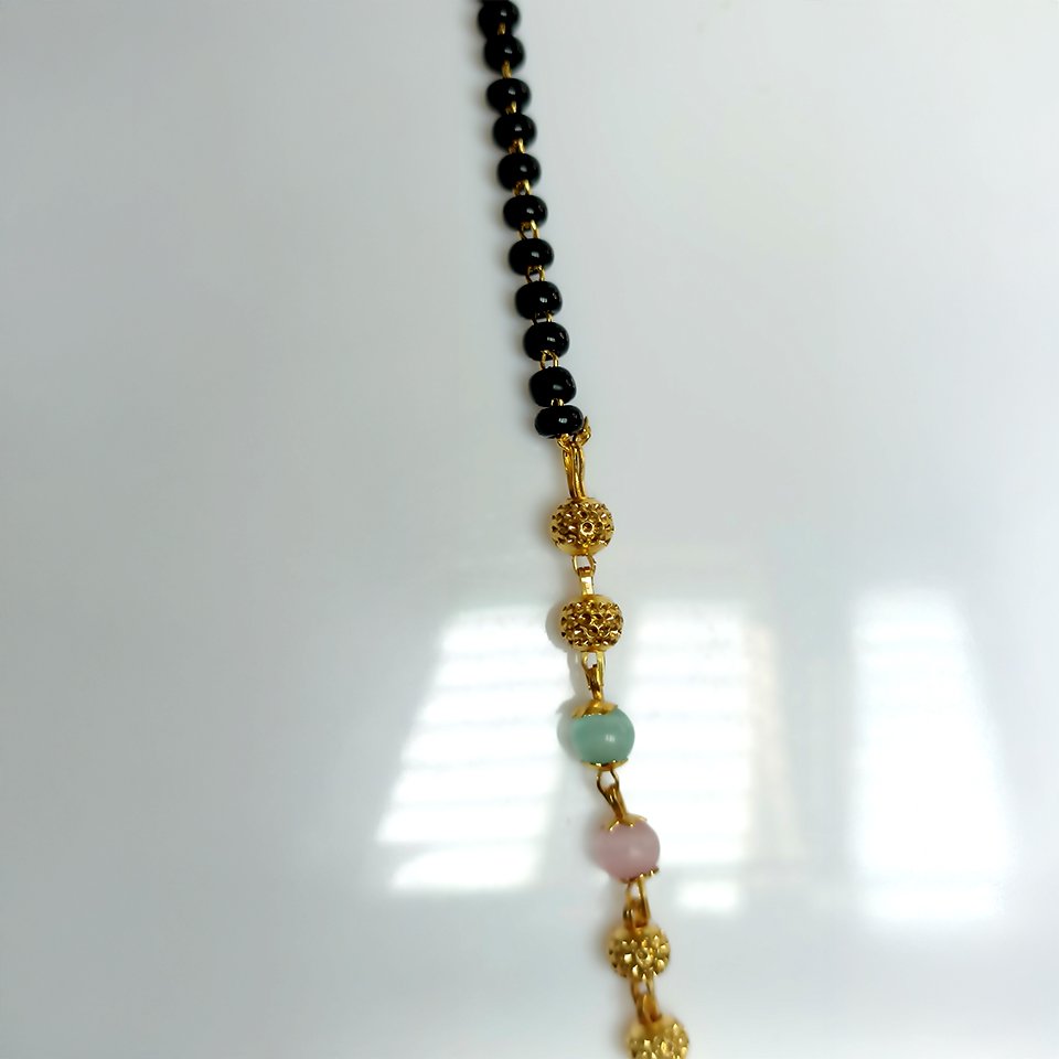 The BlushBead Mangalsutra blends soft pastel beads with classic black mangalsutra elements, creating a modern, feminine piece perfect for everyday elegance.