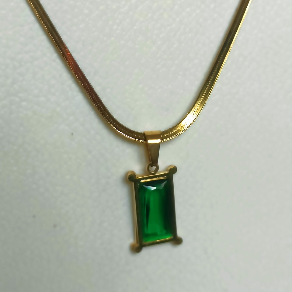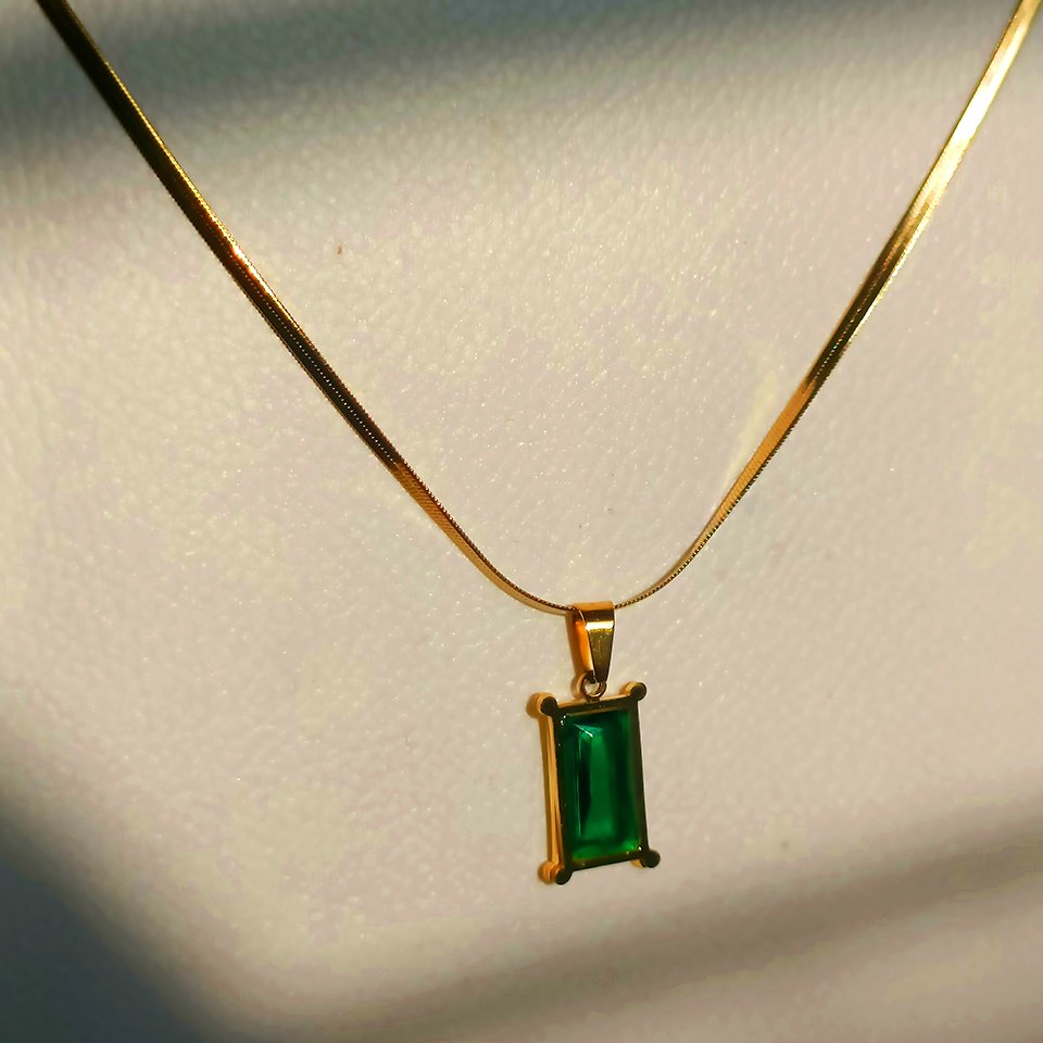 Graceful and refined, the Jade Aura Necklace is designed to bring a touch of serene elegance to every look. Featuring a luminous rectangular jade-green stone set in a sleek gold-toned frame, this necklace reflects timeless sophistication with a modern edge.