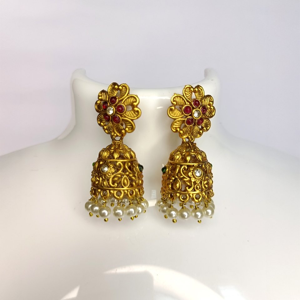 The Kanmani Pearl Jhumka is a beautifully crafted traditional earring designed to capture the charm of heritage jewelry with a refined, modern touch. Featuring a delicately carved jhumka dome adorned with lustrous pearls, this piece exudes softness, sophistication, and cultural richness. The gentle sway of the pearls adds a radiant, feminine glow, making the jhumka perfect for festive occasions, weddings, and elegant celebrations.